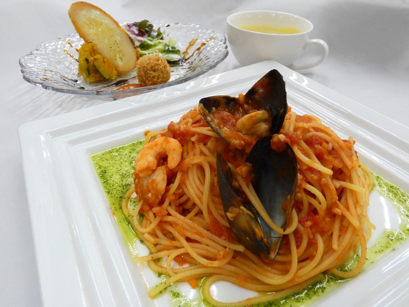 レストランのテーマは、お客様の「安らぎとくつろぎ」。 造りはシンプルながら、コースを一望でき、心地よい疲れを癒すには最適。料理も日本料理を中心に、多種多様で老若男女誰でも十分にお楽しみいただけます。