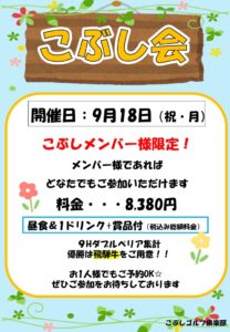 毎月月末の平日をシニアDAYとし60歳以上のお客様を優待料金でお迎えいたします♪(休場日を除く) (季節により遅めのスタートはプラン対象外となります) 1組に1名以上対象者がいらっしゃれば皆様にモーニング(コーヒー付)と昼食&1Dサービス! 料金も皆様優待料金にてご案内! 60歳以上のお客様限定でメイト入会金(¥1,100)が無料!! ※1組に1名以上対象者がいらっしゃれば同伴者も年齢に関わらずサービスいたします ※当日チェックインの際に年齢が分かる公的証明書をご提示下さい ※直接お電話でのご予約・当社HPシニアDAYプランからのご予約の方限定料金&特典です。 HPからのご予約はこちらから↓↓ https://pp-web2.jp/calendars/kobushi/calendar